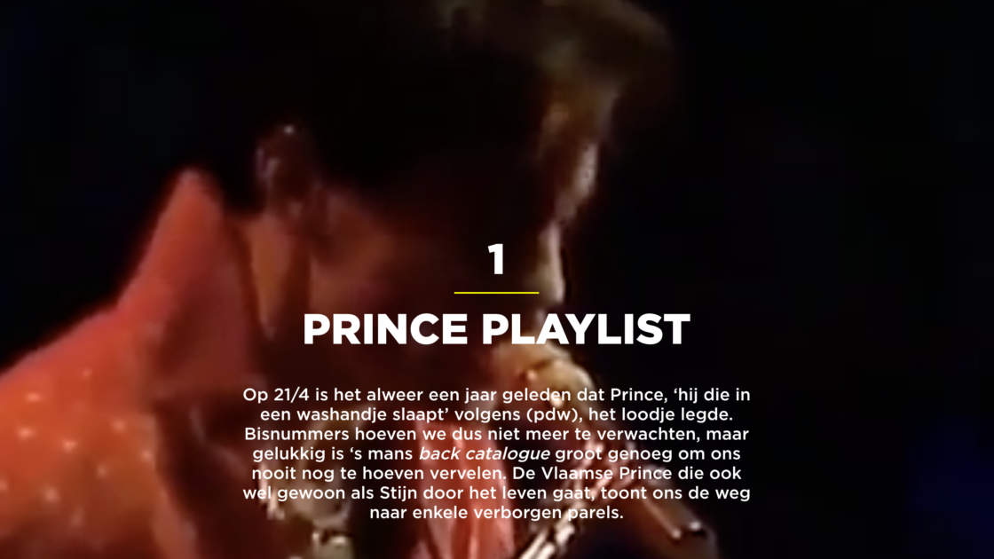Prince Playlist in CultureClub Magazine by DIGIRATY on apr 22, 2017mei 31, 2017 Stijn schrijft over 10 verborgen parels van Prince voor CultureClub Magazine: Bekijk de lijst hier Berichtnavigatie Previous: Prince – Celebration 2017Next: BRUZZ Magazine 31/05/17 – Fortune Cookies